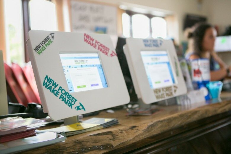 At busy peak periods sees up to 60 guests per hour enjoying the Wibit Aquapark assault course. There needed to be a solution to help combat customer wait time during peak periods, and the kiosk needed to securely enclose the tablet on a counter for self-service use by guests to check-in. The New Forest Water Park had chosen to use Apple iPads within their enclosures, requiring the enclosures to fit the iPad Minis and iPad 2, preferably the same unit to ensure continuity.